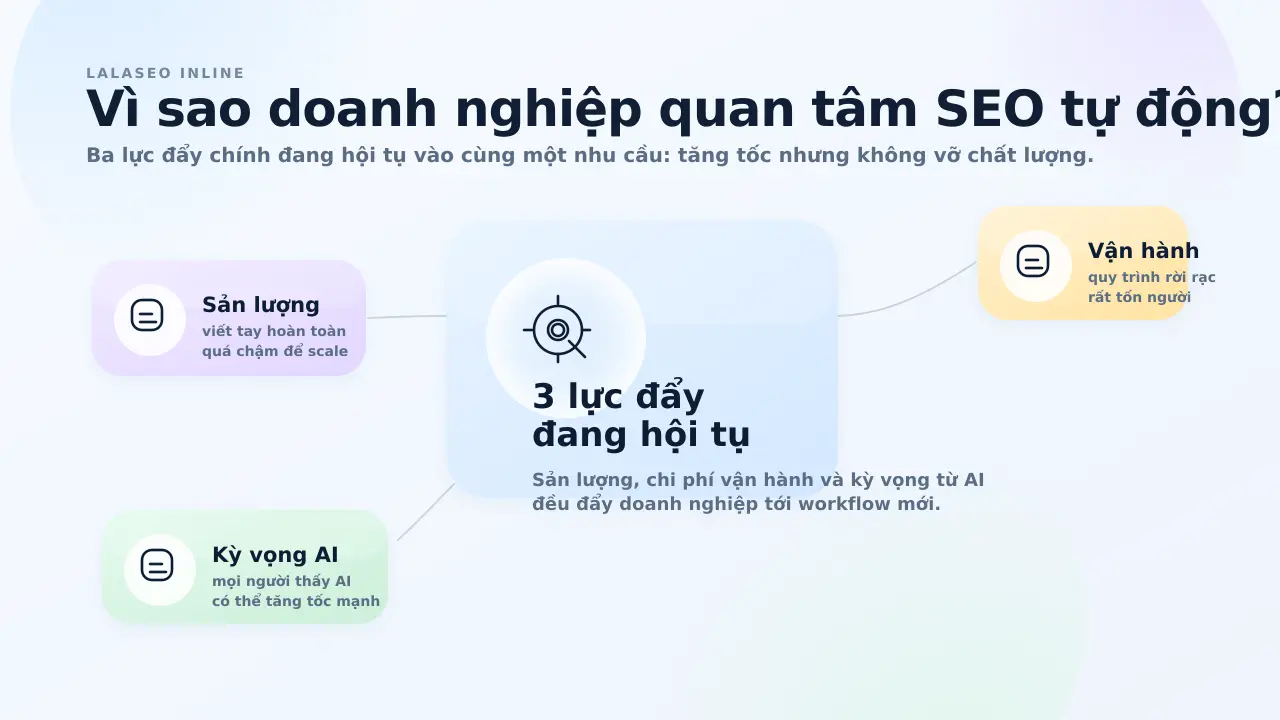 Câu trả lời là có, nhưng chỉ khi doanh nghiệp hiểu một điều quan trọng: thứ đáng tự động hóa không phải là “xuất bản thật nhiều”, mà là tự động hóa đúng chỗ trong workflow SEO để giải phóng thời gian cho những việc cần tư duy.