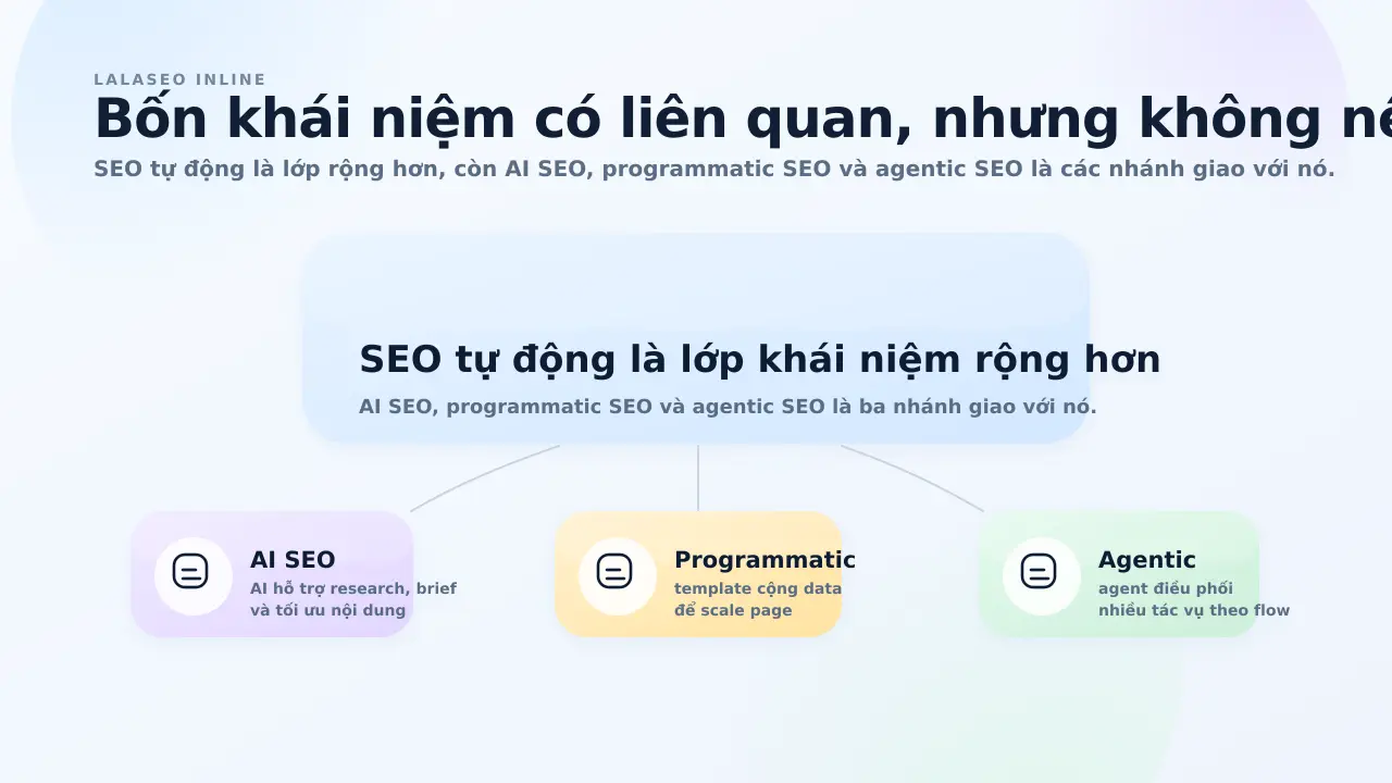 Phân biệt SEO tự động, AI SEO, programmatic SEO và agentic SEO