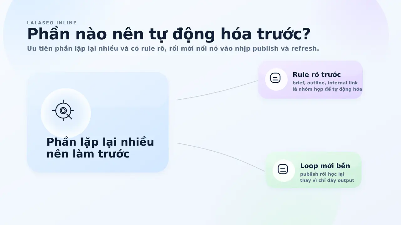 Nếu bạn đang đứng ở lớp vận hành, hai bài nên đọc thêm là Internal link tự động: lợi thật hay chỉ là chèn link cho đủ? và Đăng bài tự động lên WordPress: tiện, nhưng cần chặn lỗi ở đâu?.